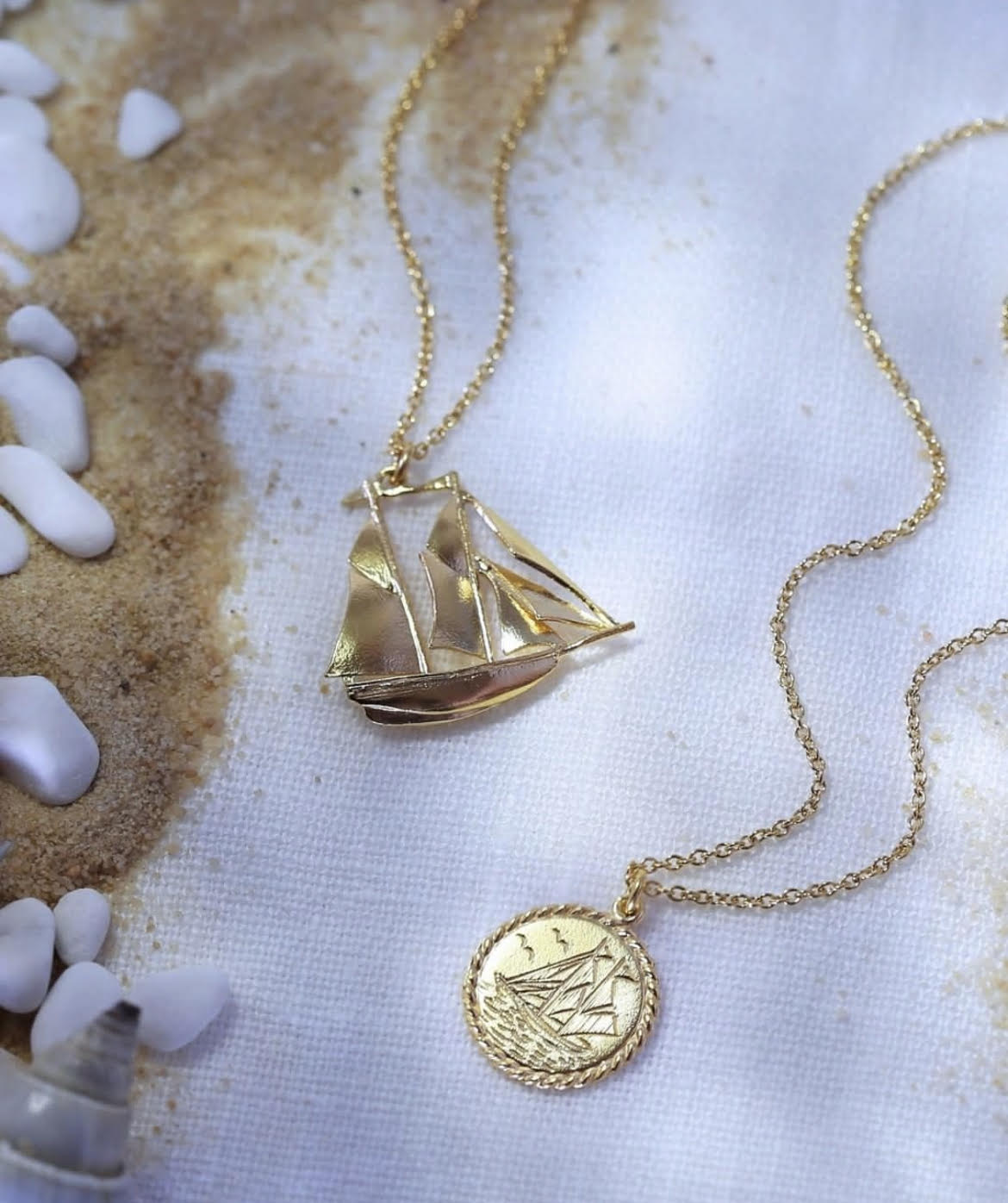A necklace inspired by antique coin pendants crafted in the Victorian age by lonely sailors out at sea. Our nautical antique coin necklace is hand engraved on both sides and framed with ship rope detailing.