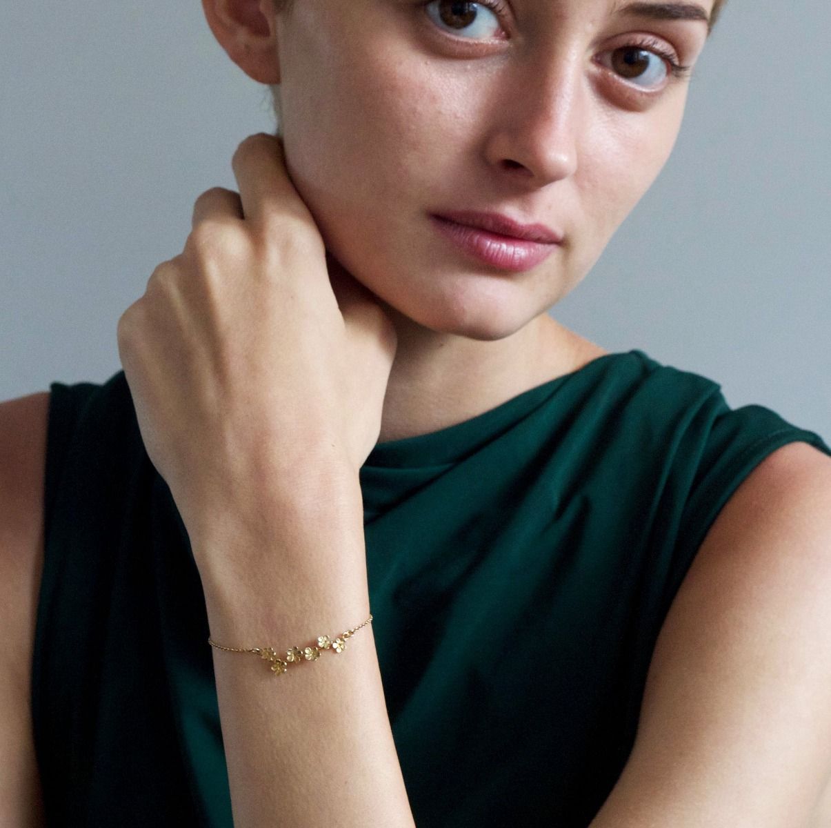 A delicate trail of Forget me Knot Flowers have bloomed to create this delicate bracelet