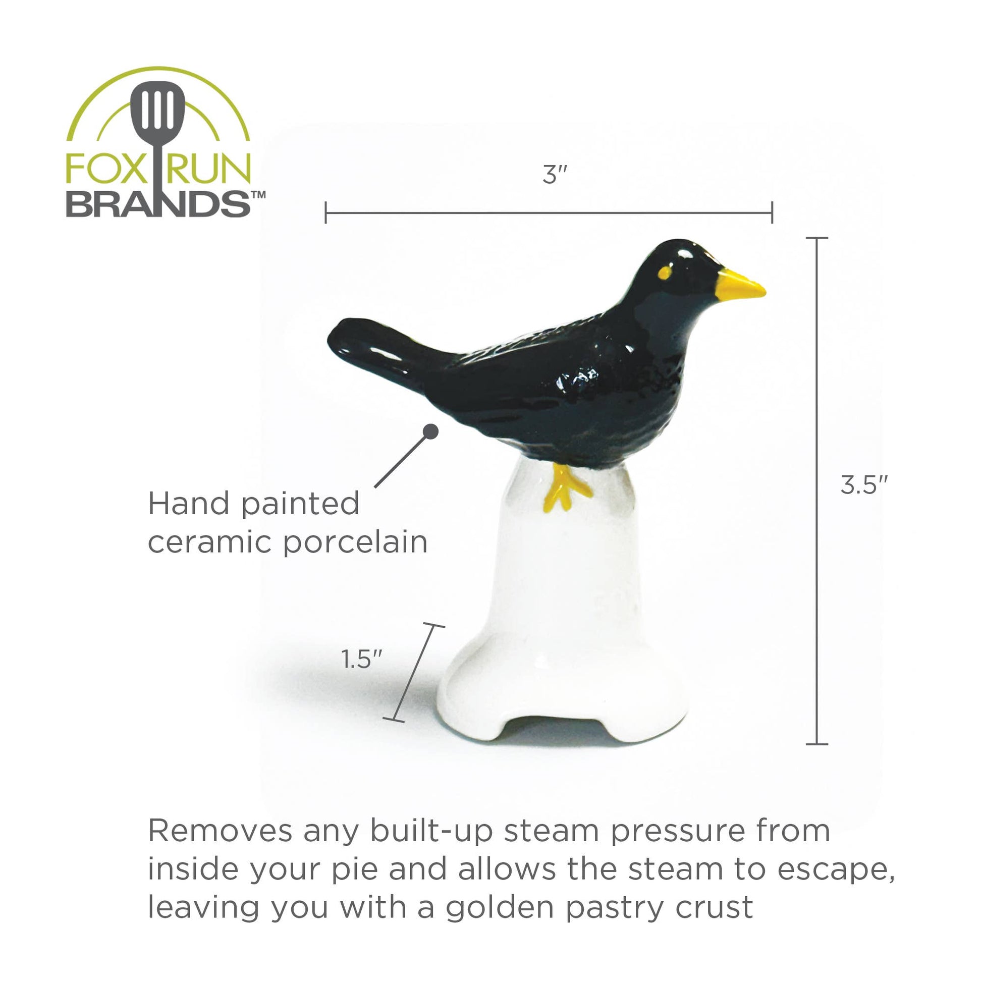 MEASUREMENTS AND CARE: Blackbird Pie Vent measures3” x 3.25” Hand wash only, not dishwasher safe. Let the pie baking vent cool before placing in water.