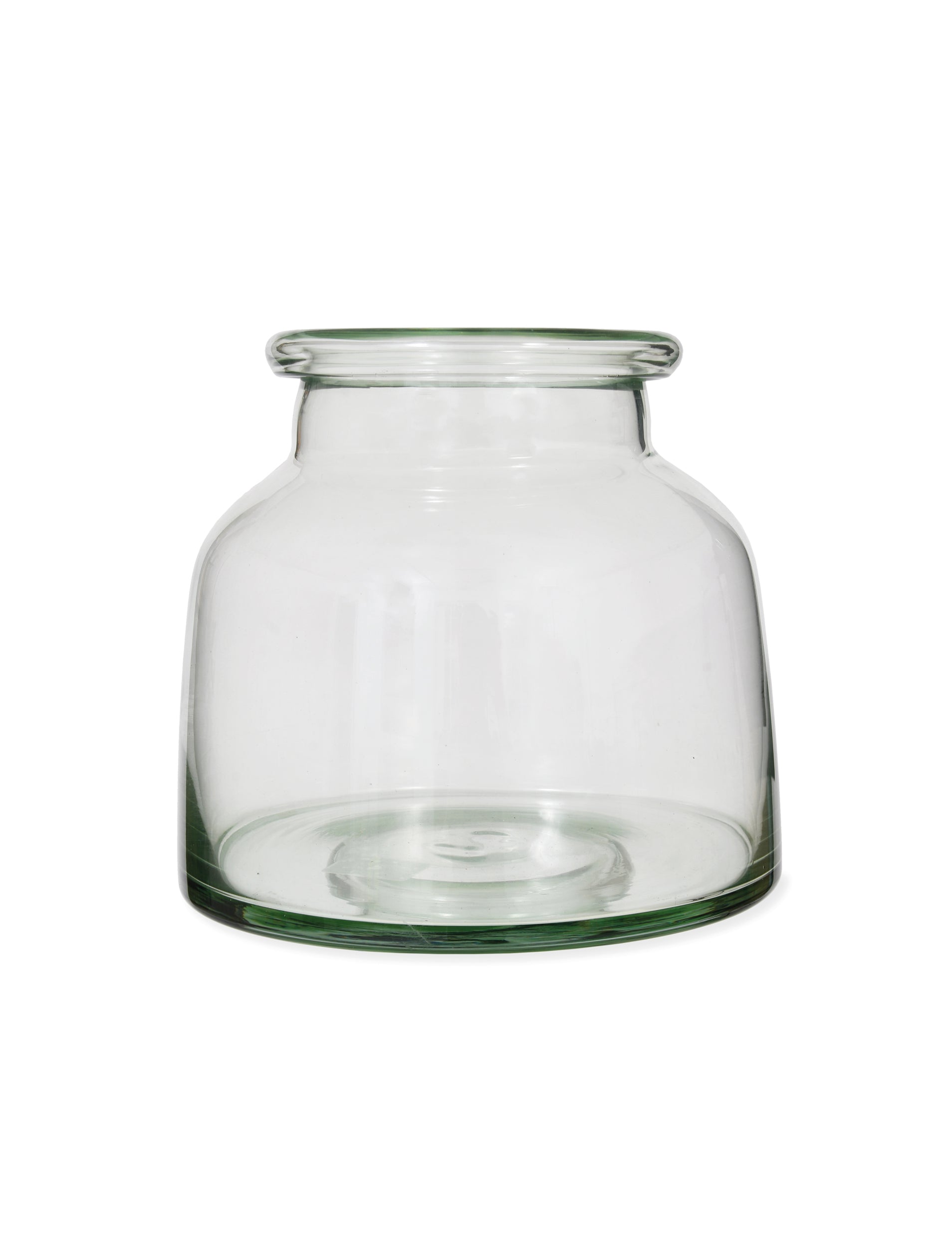 Inspired by vintage pickle jars, the Mickleton Vase is hand-blown from recycled glass with a distinctive chunky rolled rim and wide base. This makes it perfect for use with medium sized bouquets or a handful of beautiful big blooms like peonies, hydrangea and dahlias.