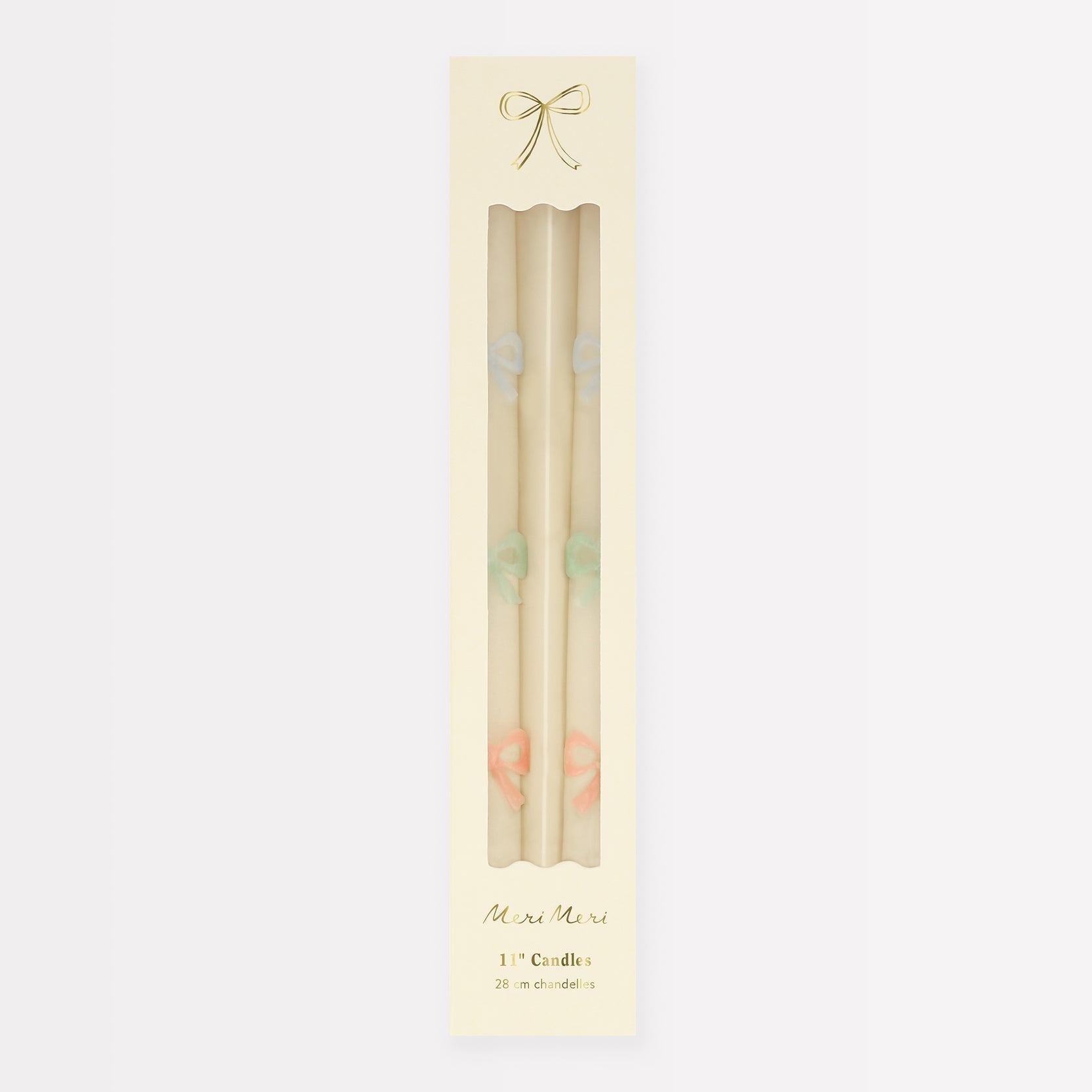 - Ivory candles with hand-painted gold ink bow relief design