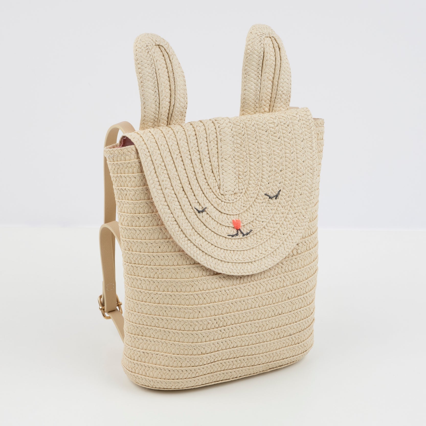 This sweet bunny backpack is expertly crafted from woven paper raffia: a key trend for Spring/Summer 23. It has on-trend gingham details too, to make it a must-have accessory.